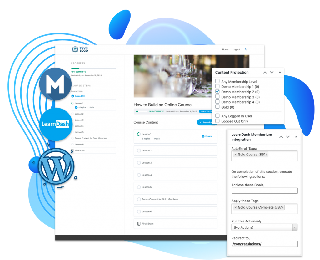 你可以构建在线课程教其他人则是你最了解的。Memberium与LMS插件的开箱即用集成。